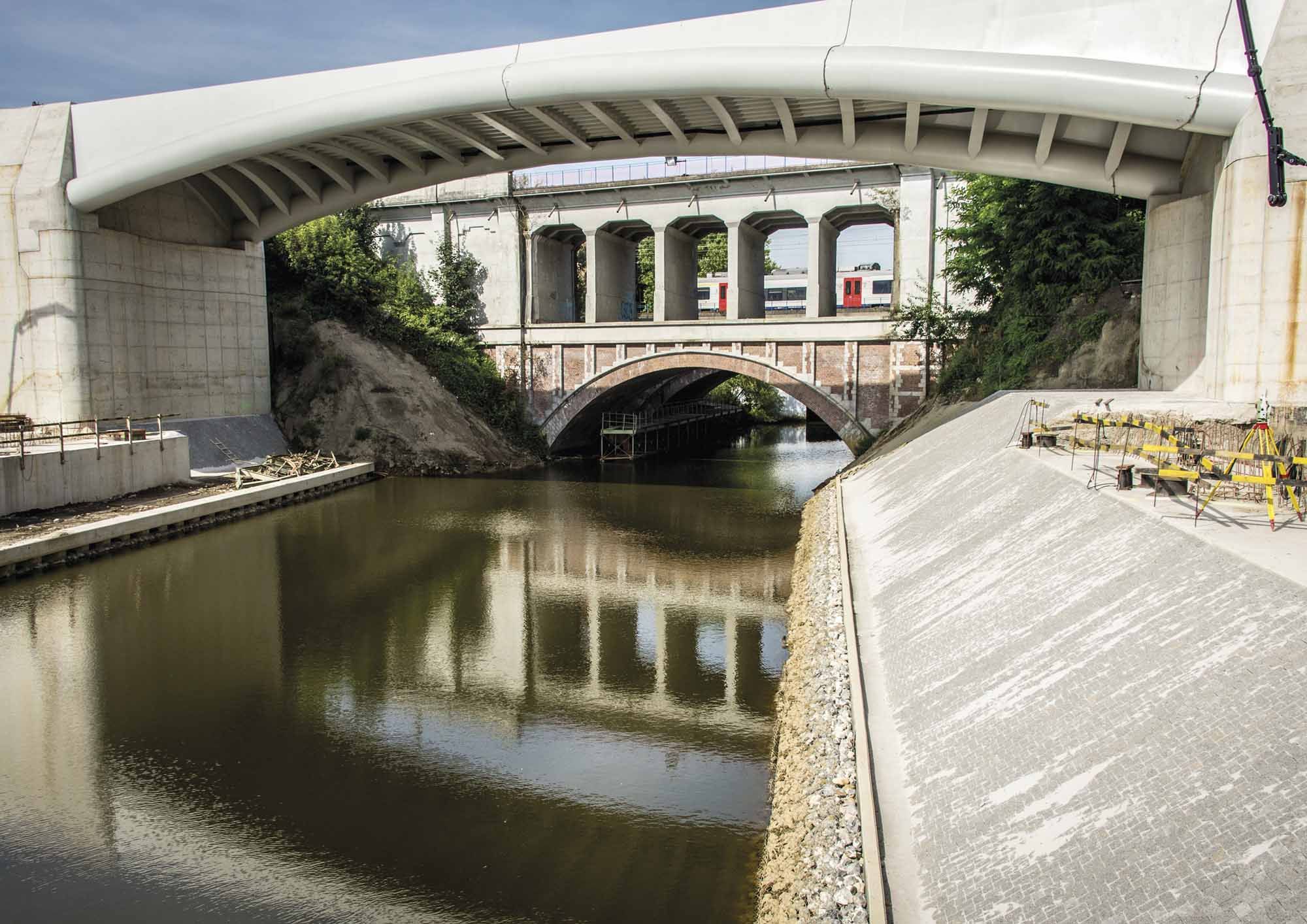 3-spoorbrug met grote schuinte
