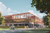 Impressionnant hangar aéroportuaire à la toiture ondoyante