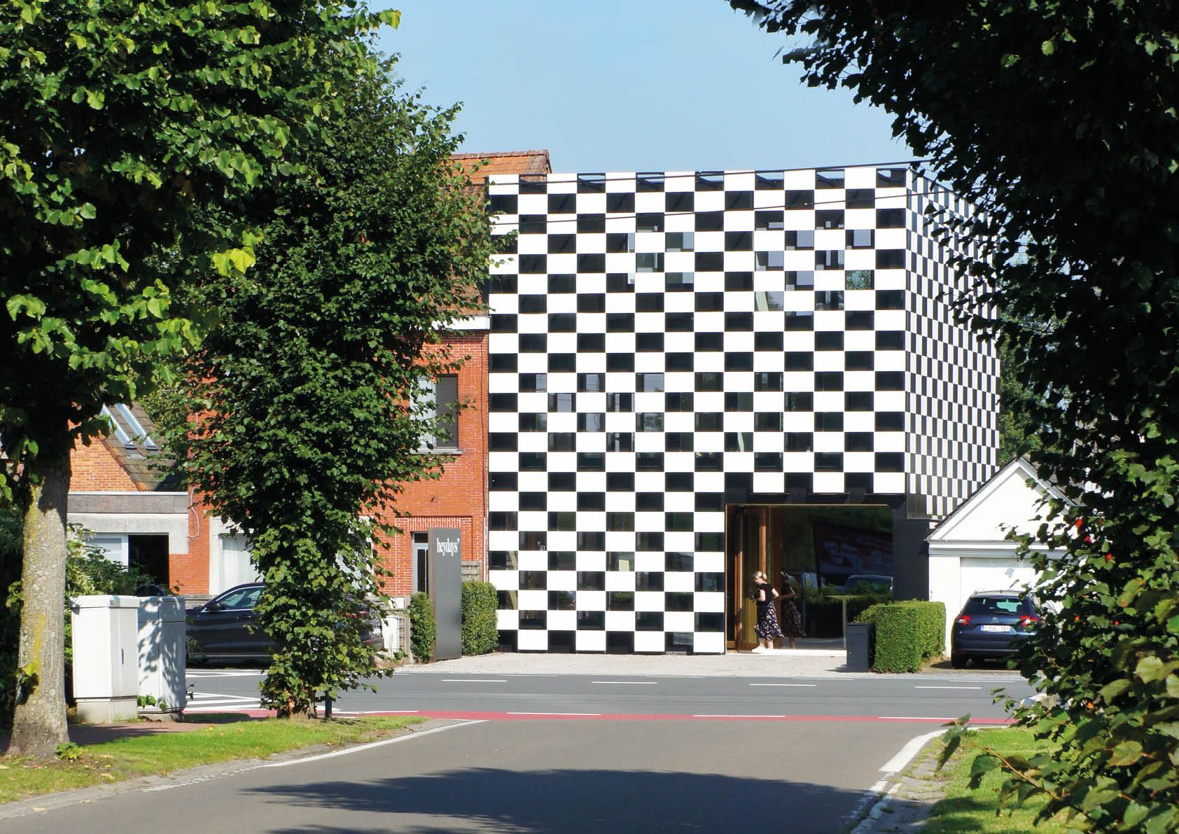 Une structure abstraite a été placée devant les façades, conférant au bâtiment son caractère et son apparence. D’une part, cette structure est indépendante de la façade, mais elle y est également fixée à certains endroits et est composée de profilés tubulaires peints en noir. Des plaquettes blanches laquées ont été posées sur ces derniers. L’ombre portée sur la façade arrière crée l’impression d’un jeu de blocs noirs et blancs qui se poursuit sur la façade latérale.