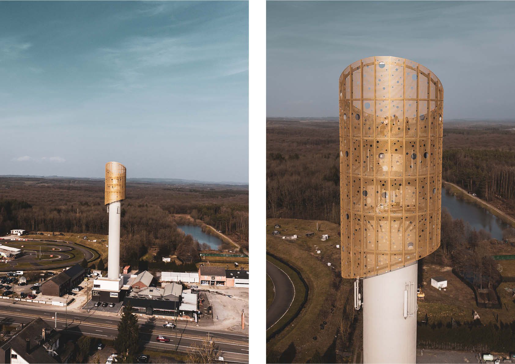 La coiffe de la Tour de la Famenne à Marche, inutilisée depuis 1970, a été démontée totalement, ne laissant que le fut en béton. Elle a été restaurée au sol avant d’être replacée au sommet. Celle-ci supporte désormais un nouveau couronnement métallique à trois niveaux, qui offre une vue à 360 degrés sur les environs à plus de 50 m de hauteur.