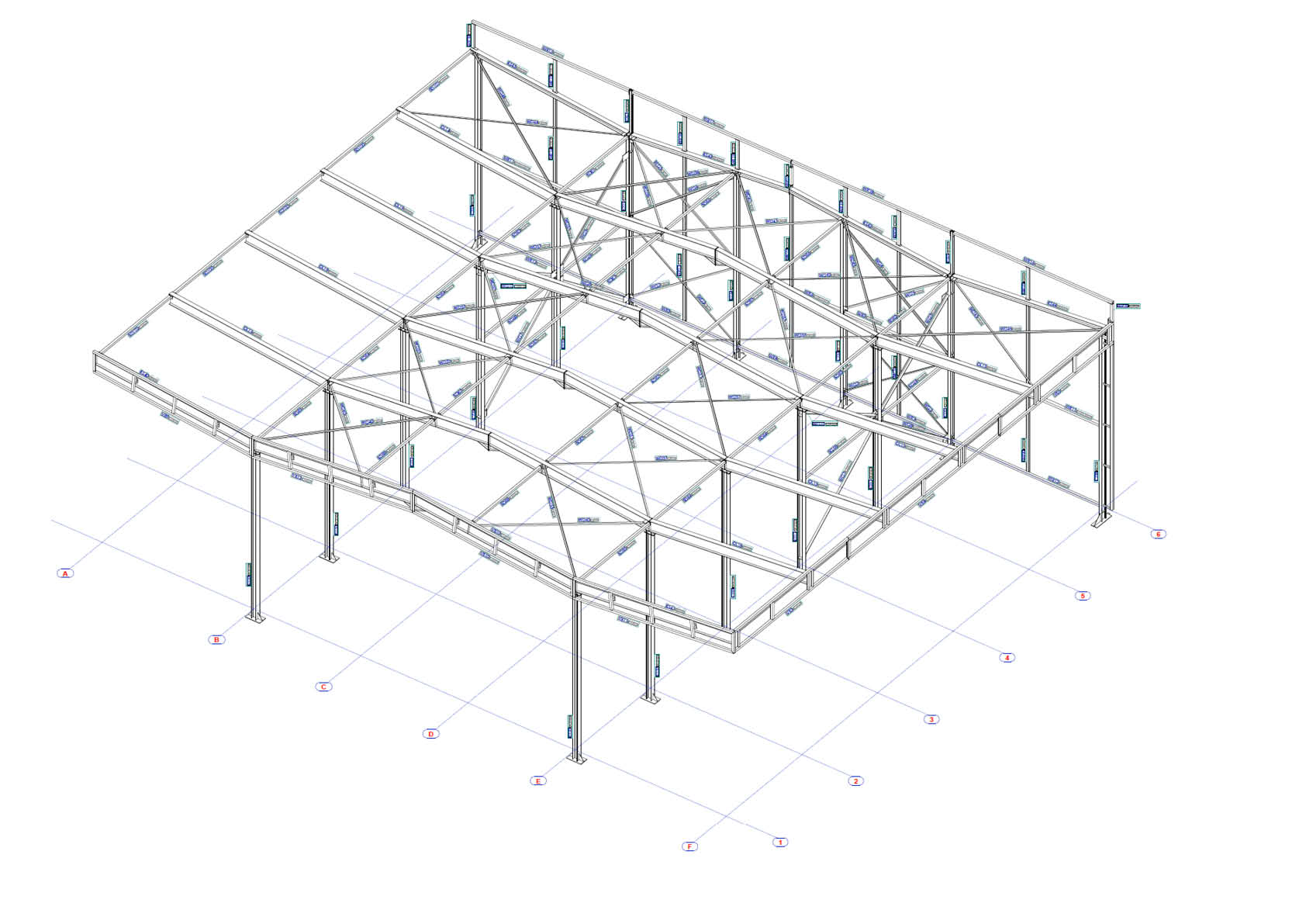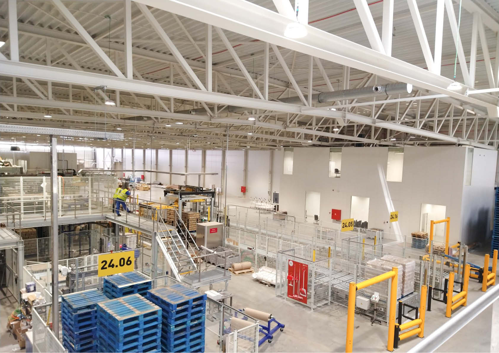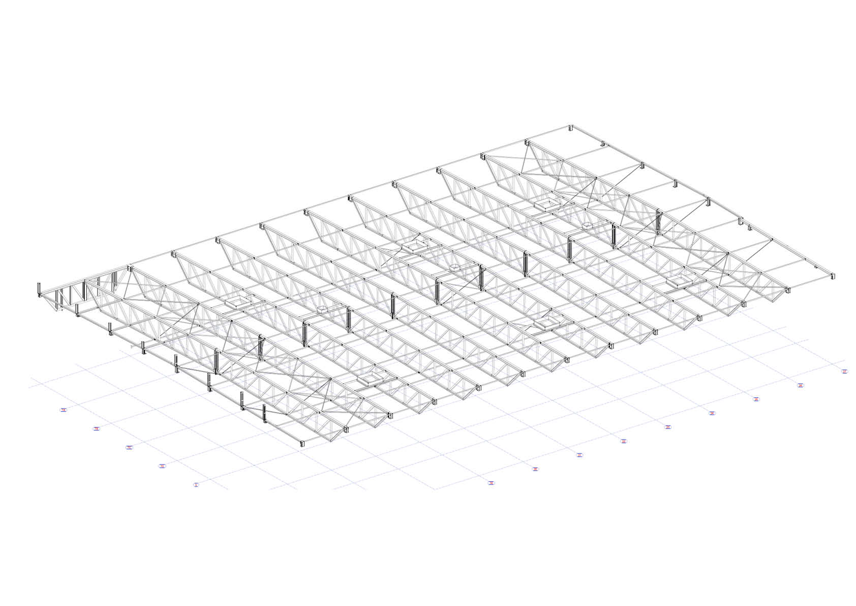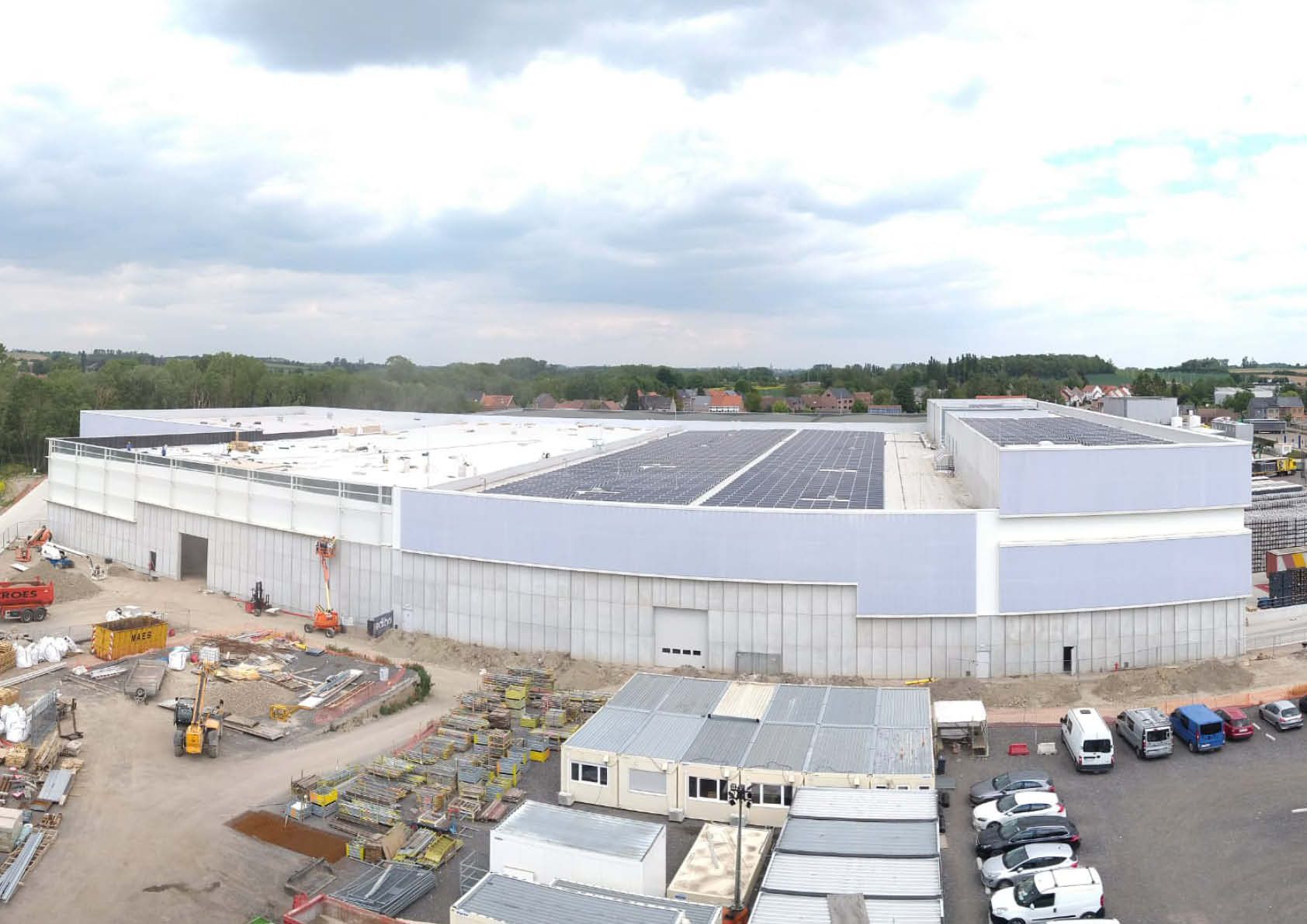 Au total, le projet représente quelque 17 500 m² d'entrepôts et de structures en auvent. Les applications de l'acier dans le cadre de ce projet sont légion : des charpentes en acier d'une portée allant jusqu'à 54 mètres et d'un poids maximal d'environ 8,5 tonnes (soit 936 tonnes au total), des passerelles suspendues en acier (plus de 27 tonnes de tôles larmées), un bardage composé d'environ 8500 m² de panneaux sandwich en acier et d'environ 17 500 m² de panneaux de toiture profilés en acier. La production devant se poursuivre pendant toute la phase d'exécution, les différentes parties du bâtiment ont été phasées.