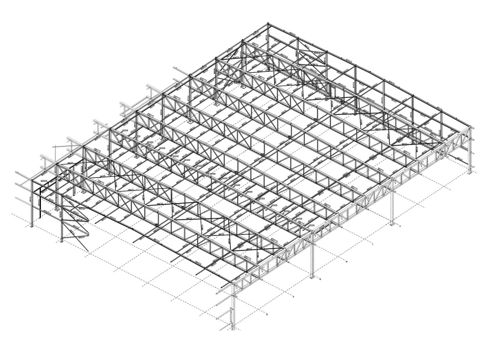 À l'exception de la partie technique, le bâtiment a été construit entièrement en structure d'acier (370 tonnes au total). Le hall de conditionnement est construit à l'aide de poutres pleines et les chambres froides à l'aide de structures en treillis dont la portée peut atteindre 40 mètres, afin de créer les plus grands espaces ouverts possibles. Tant les façades (environ 6000 m²) que les murs et plafonds rafraîchissants (2900 et 6500 m² respectivement) sont constitués de panneaux sandwichs métalliques, soumis à des exigences acoustiques spécifiques. La zone des bureaux est revêtue de simples panneaux muraux et la toiture d'environ 7400 m² de tôles en acier.