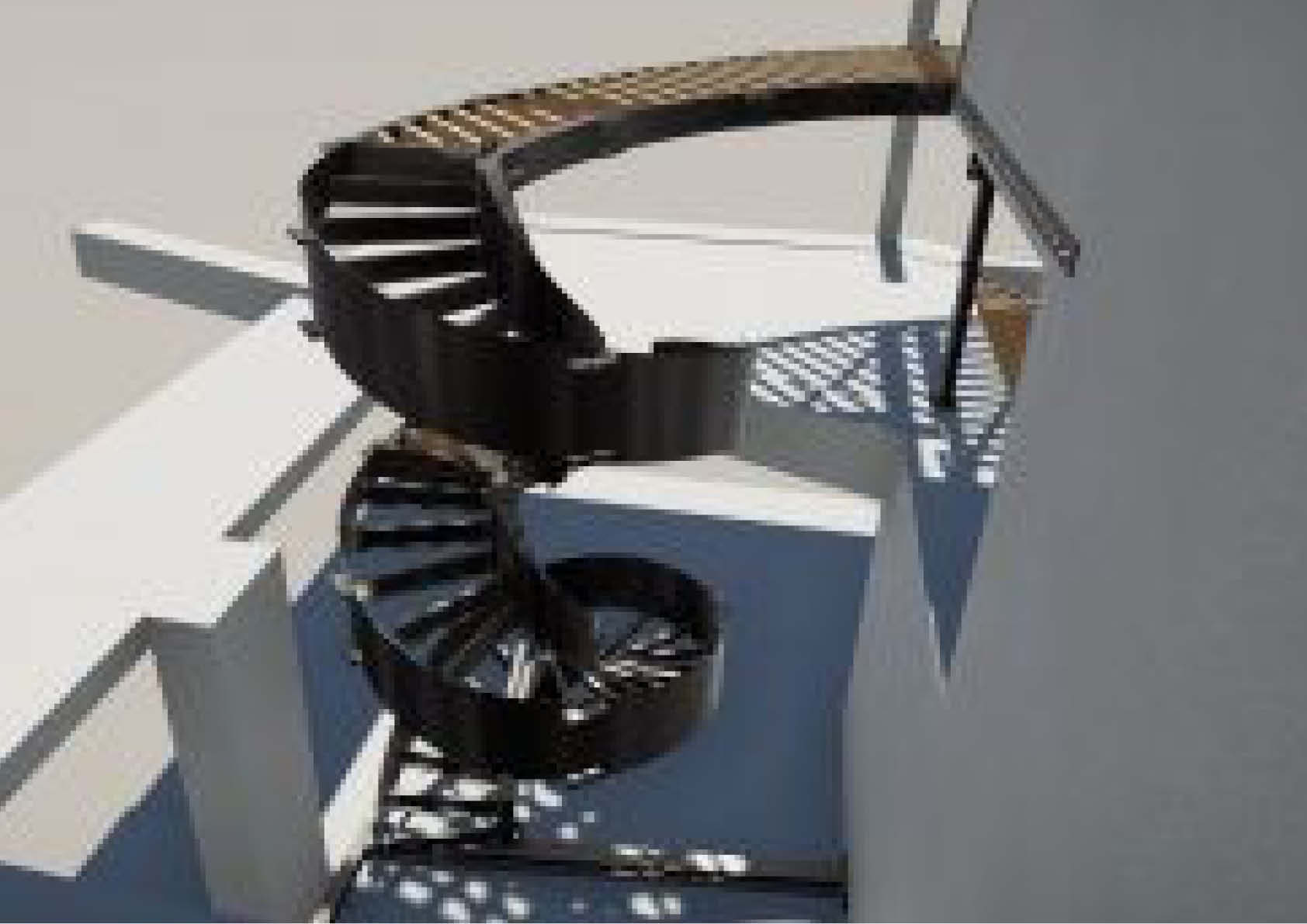 Le nouvel escalier en colimaçon dessert plusieurs niveaux d'un penthouse dans un bâtiment existant. La construction comprend l'escalier elliptique en colimaçon avec des plaques torsadées ainsi que les différents niveaux du penthouse.