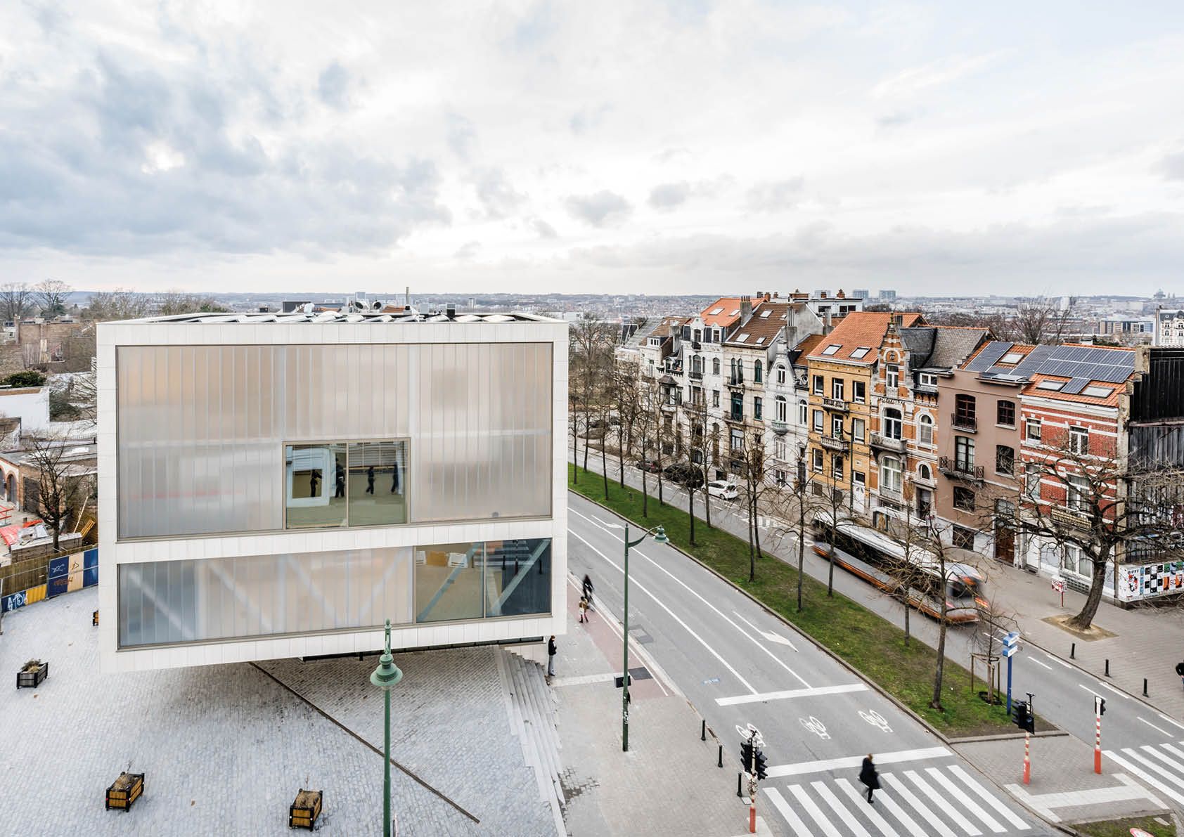 Malgré l’espace limité disponible pour les fondations - le métro traverse en diagonale le complexe - la surface utile a pu être maximalisée. Cela grâce à d’ingénieuses structures métalliques en treillis, en partie laissées visibles, qui permettent même un impressionnant porte-à-faux dans le plus grand des deux nouveaux volumes.