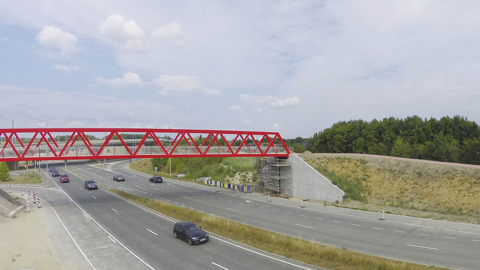 Une hauteur libre de 5,80 m était nécessaire pour permettre aux transports lourds de passer sous le pont. Un pont en treillis efficace a été choisi, ce qui a également permis de réaliser des culées aussi compactes que possible. La portée au-dessus de la N21 est de 48 m.