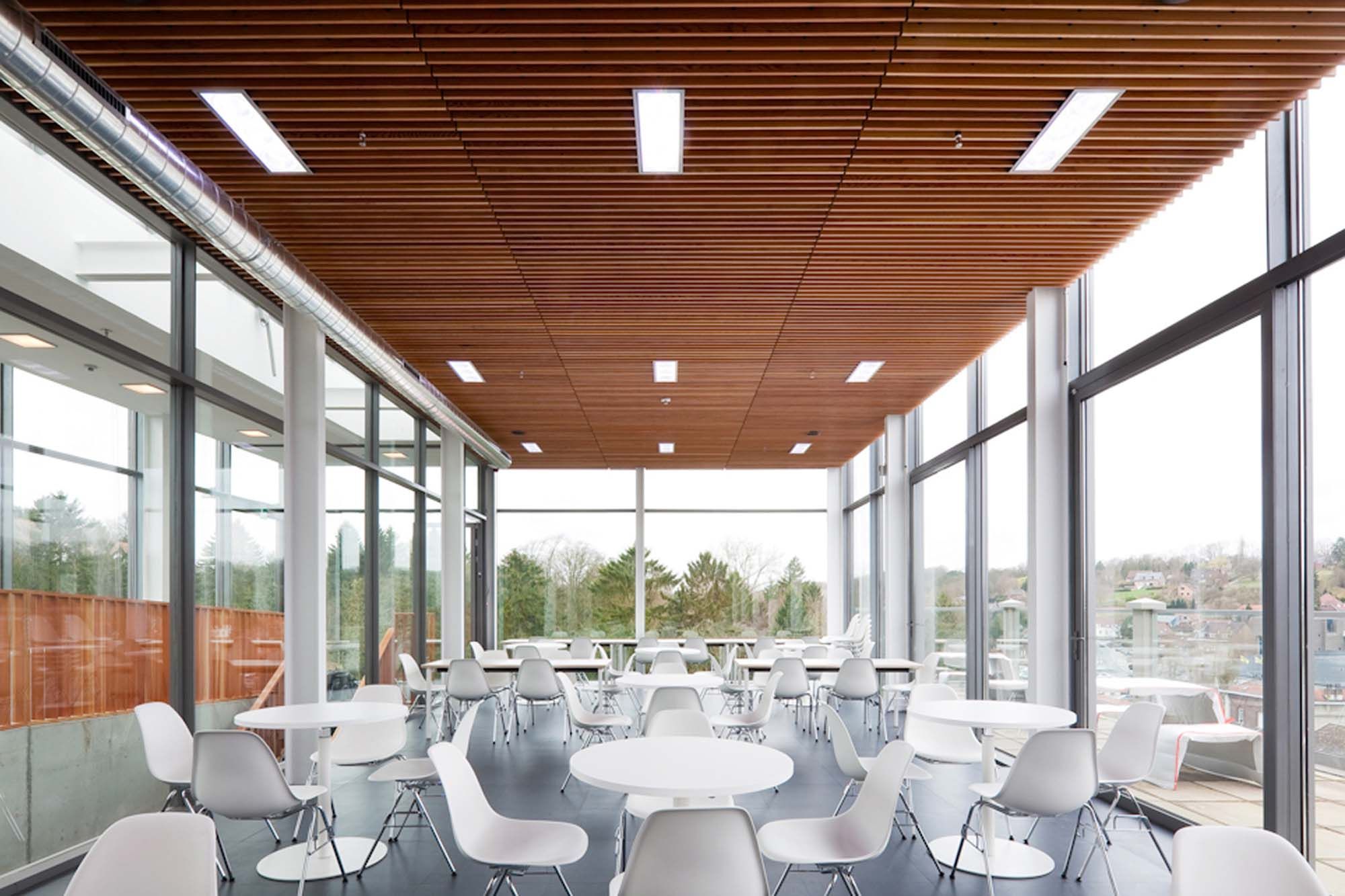 À Overijse, un moulin à grains industriel classé a été restauré et agrandi pour devenir un centre administratif. Les trois bâtiments existants ont subi une restauration légère et de nouvelles affectations leur ont été attribuées. L’évolution perceptible de ces bâtiments a impliqué l’utilisation d’un langage formel et de matériel contemporain. L’acier a été utilisé dans le mur-rideau de la façade sud combiné à une structure en avant-plan avec pare-soleil. Le nouveau volume en toiture au-dessus du bâtiment central comporte une structure en acier complétée par un mur-rideau vitré et un toit en steeldeck. Le choix s’est porté sur l’acier, pour sa légèreté, son intégrité, son aspect durable et le peu d’entretien qu’il requiert. De plus, la structure en acier fait partie de l’architecture et un mur-rideau en acier laisse davantage de liberté à la créativité du concepteur.