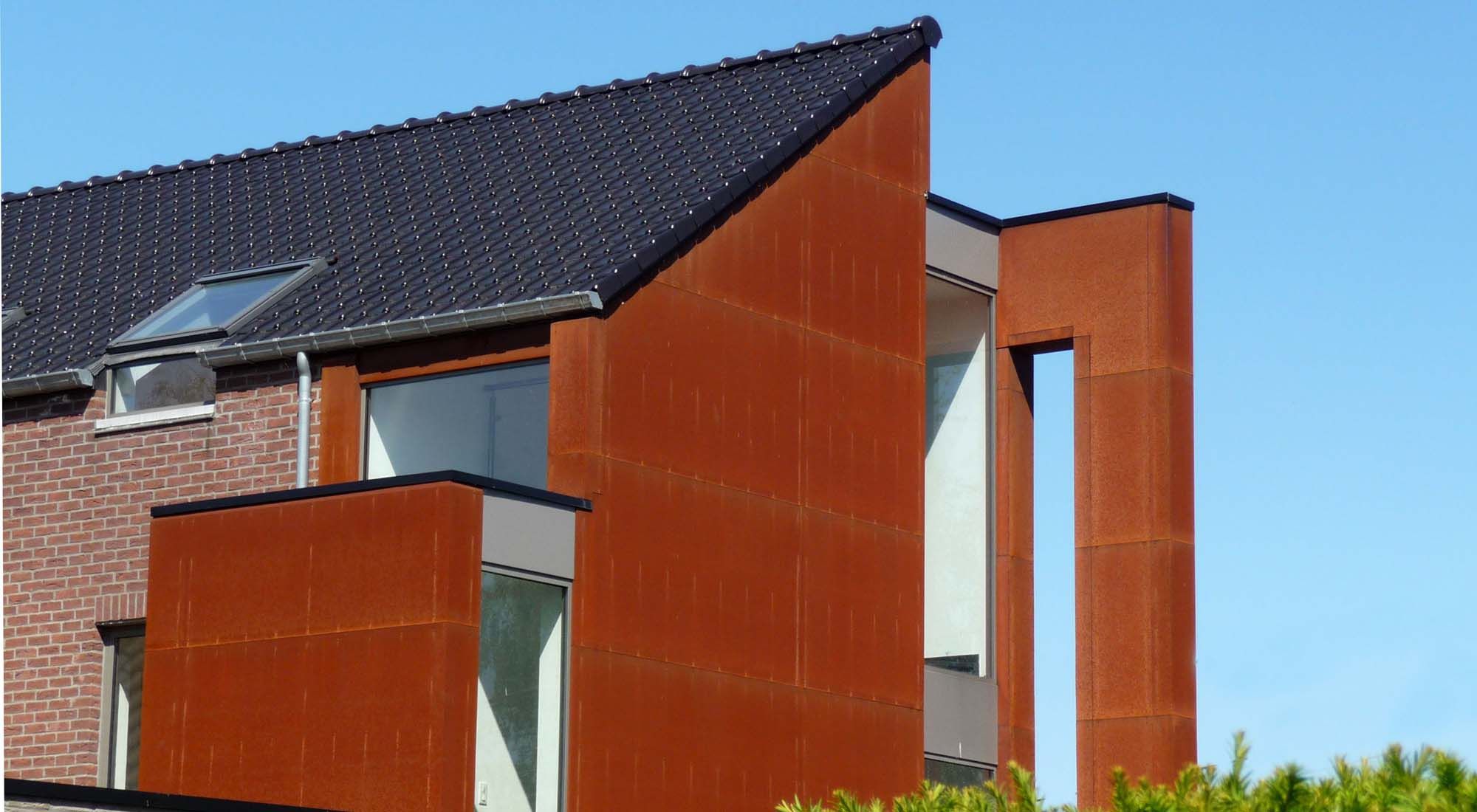 L’acier autopatinable, a été l’élément clé de ce projet de transformation d’une habitation et de ses annexes en deux appartements. Le projet offre une relecture contemporaine, aux allures manufacturières, de l’architecture de la bâtisse initiale.
