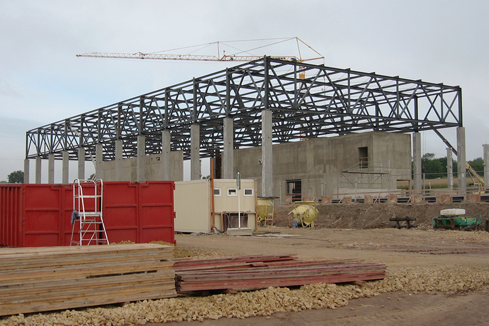 Les constructions en acier répondent à une organisation à la pointe du progrès, largement automatisée et évolutive. La surface bâtie de 33.000 m2 est couverte par des charpentes en treillis. Ces structures en acier S235 et S355 reposent principalement sur des colonnes monolithes ou des poutrelles HEB 220. Côté accès, le complexe se signale par un hall proéminent à ossature métallique.