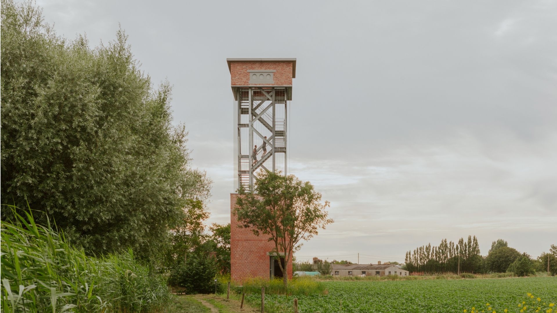 Lors du réaménagement de l'élégante et caractéristique tour de pompage en briques d'Eernegem, l'objectif principal était de préserver son aspect d'origine. En même temps, l'ambition était de donner au bâtiment une nouvelle fonction et une nouvelle échelle de temps : la transformation en tour de guet. Il s'agit de l'ancien bâtiment des pompes pour l'approvisionnement en eau du réseau ferroviaire de la région.