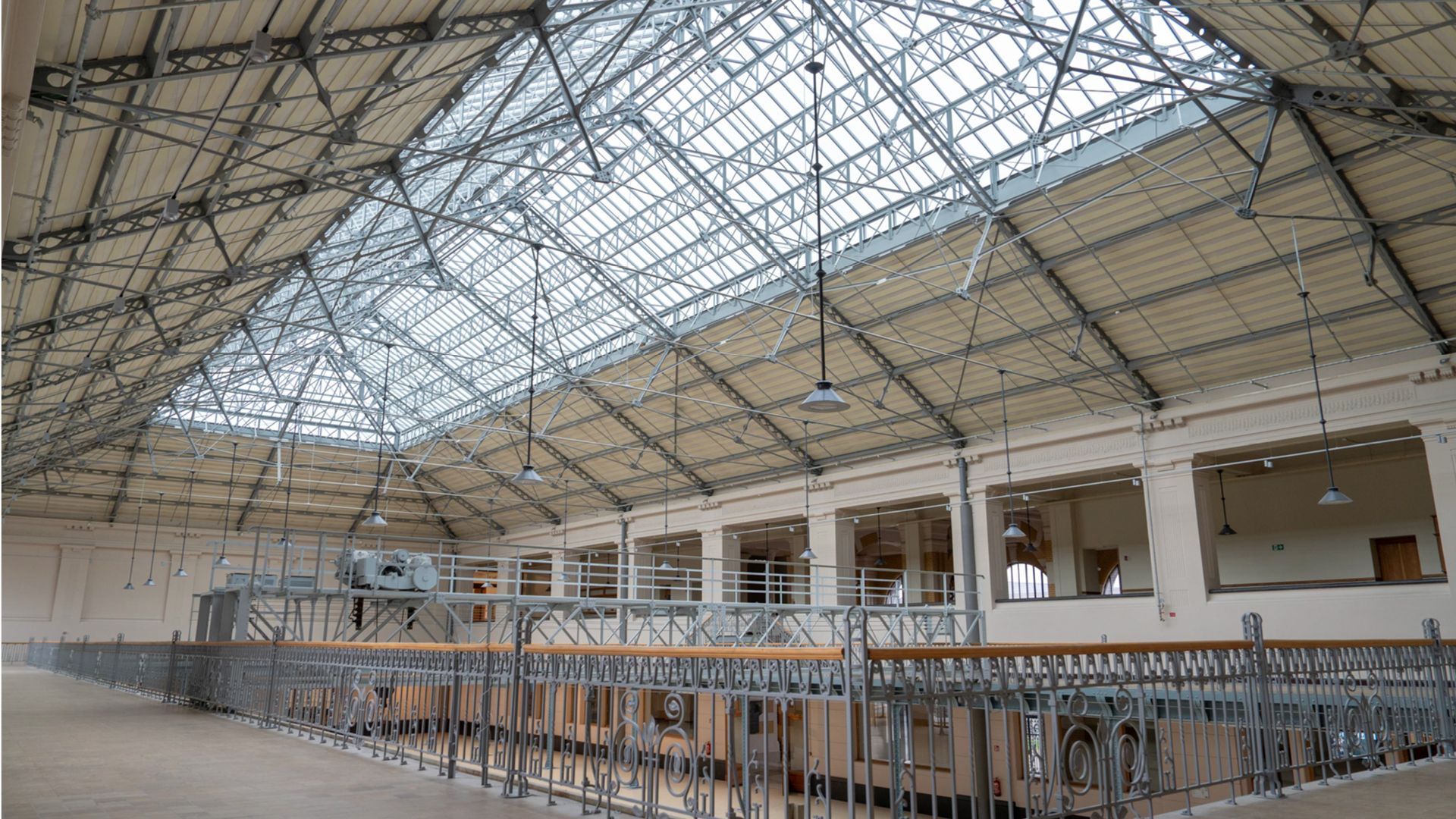 Une analyse approfondie des archives, incluant photogrammétrie et relevés, a permis de redécouvrir la morphologie des verrières d’origine et les charpentes Polonceau qui soutiennent les deux verrières restaurées de 1500 m² à 4 versants et 500 m² à 2 versants. Assemblée en acier compatible, la structure intègre des éléments modernes discrets (sprinklage, exutoire de fumée, double vitrage). L’étude de stabilité a justifié l’ajout de tirants, et de nouvelles pannes en acier ont été fixées aux fermes, consolidées par des boulons électro zingué de classe 8.8. Enfin, les structures métalliques ont été traitées contre la corrosion et repeintes aux couleurs d’origine.