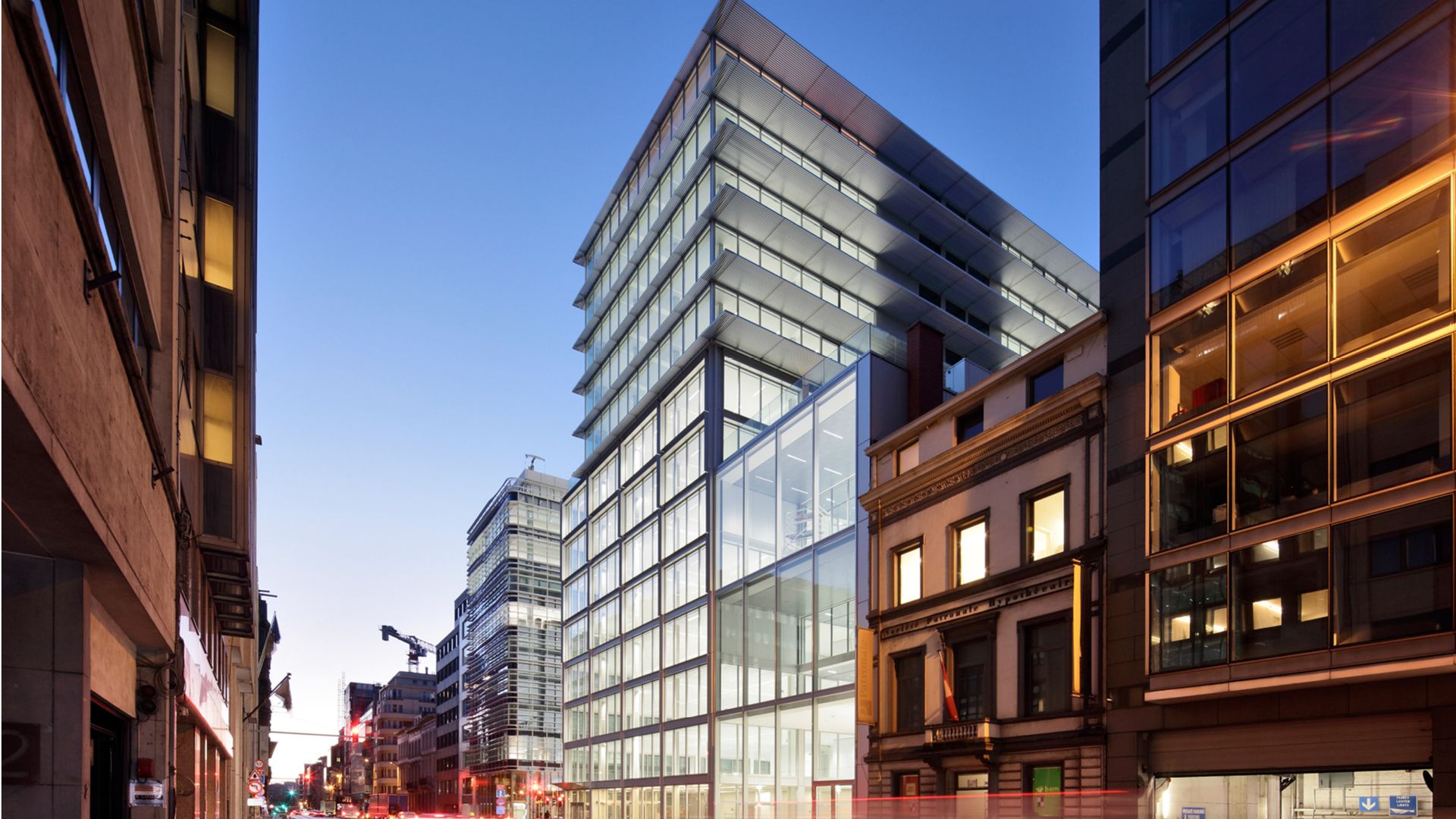 Commerce 46 est un complexe de bureaux durable et innovant situé au cœur de Bruxelles. Le projet comprend 13 800 m² d'espace de bureaux répartis sur 12 étages et dispose d'un parking souterrain, de pistes cyclables et de toutes les technologies. Cette dernière permet de préserver au maximum la toiture.