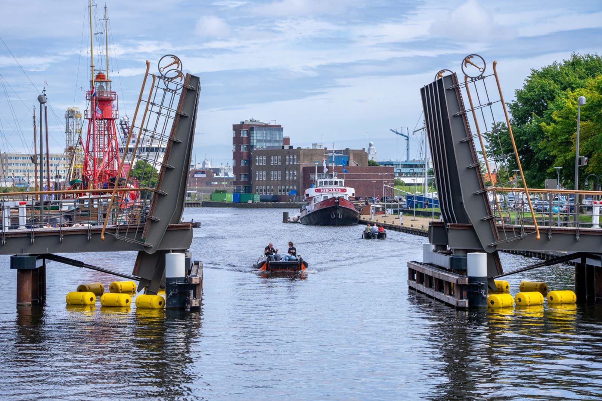Au cœur de la ville de Willemsoord, à Den Helder (Hollande du Nord, l'ancien pont-flottant étroit a été remplacé par un nouveau pont. Ce dernier a été conçu dans un souci de confort, mais aussi dans le respect de l'histoire. Après la conception architecturale, le travail s'est poursuivi au sein d'une équipe de construction composée de l'architecte, de l'entrepreneur et du constructeur. La longueur totale du pont est de 52 m et la partie mobile se compose de deux tabliers. Tout le défi de la conception structurelle consistait à faire en sorte que les deux tabliers s'emboîtent intelligemment l'une dans l'autre. Il a été décidé d'équilibrer et d'actionner les deux tabliers séparément. Pour l'entraînement, le choix s'est porté sur des actionneurs. Le recours à des actionneurs dans un pont à double bascule est une première. Au total, 210 tonnes d'acier ont été utilisées dans la construction du pont. Le choix de l'acier a permis de réaliser l'ensemble de la travée et de la partie mobile en usine. Le montage de tous les éléments du pont ainsi réalisé n'a pris que deux jours. Les doubles tabliers, les garde-corps et ornements en acier, les actionneurs nécessitant peu d'entretien et le tablier en bois épuré font de ce pont une construction unique.