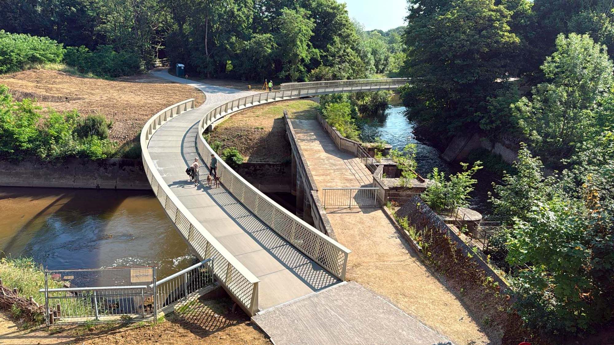 Le pont Saspoort à Diest, inauguré en 2025, est un élégant pont cyclable et piétonnier à hauteur du site historique 'Grote Steunbeer', un barrage historique sur la Demer détournée. Il constitue une liaison sûre et confortable entre Schaffen et le centre-ville, et fait partie du réseau flamand d'autoroutes cyclables. Le pont en acier avec un tracé en forme d'arc de 100 m de long s'intègre parfaitement dans le paysage et le patrimoine et remplace un passage vieillissant. Il contribue à la mobilité durable, à la gestion des eaux et à la rénovation urbaine. Le pont est entièrement accessible, rejoint les itinéraires existants et renforce la connectivité dans la région. Le nom 'Saspoortbrug' fait référence à la porte d'accès historique située le long de l'eau et a été choisi via un sondage public.