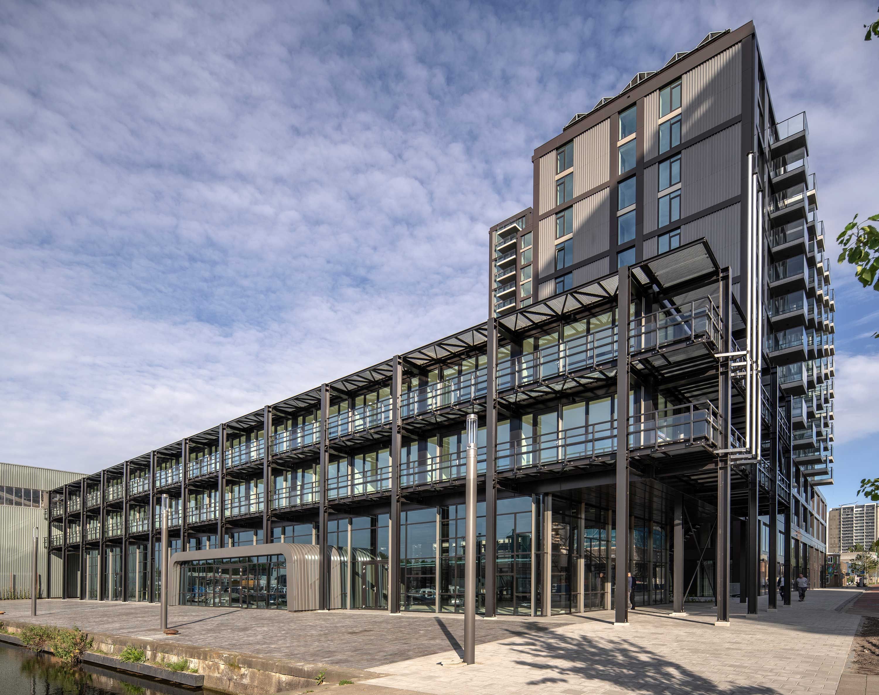 Après avoir passé des années sur un chantier à Pijnacker, l’ancienne auberge de jeunesse Ockenburg, près de Loosduinen, a été reconstruite dans son style d’origine dans le quartier Binckhorst de La Haye. L’acier d’origine a pu être entièrement réutilisé. Et avec 75 tonnes d’acier supplémentaire, l’aile Van Klingeren, vieille de 50 ans, a été reconstruite. Les poutres du portique, placées transversalement, se composent de quatre colonnes et de poutres connectées de manière rigide. Des contreventements sont placés contre les deux façades pour assurer la stabilité dans le sens longitudinal.