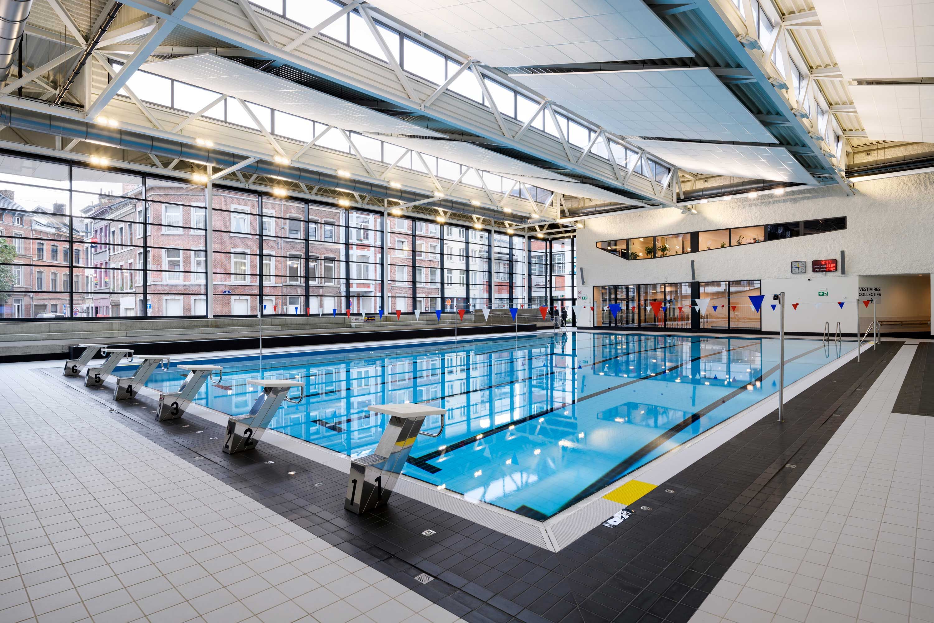 Pour des raisons sanitaires et/ou de sécurité, la plupart des piscines publiques situées en Cité Ardente avaient dû fermer au début des années 2000, obligeant les Liégeois à aller nager dans les communes avoisinantes. En 2011, on lançait le projet d’une nouvelle piscine dans le quartier Jonfosse. Celle-ci a désormais ouvert ses portes et ses bassins au public. L’imposante toiture en shed, maximisant l’entrée de lumière dans la piscine, contribue de manière significative à l’expérience sportive.