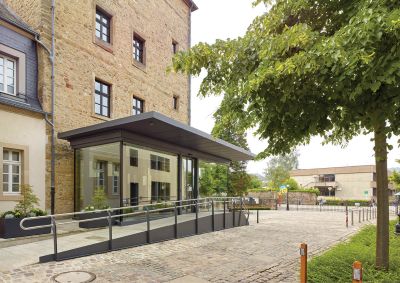 Stalen draagkracht voor houten kapspanten in gerestaureerd klooster